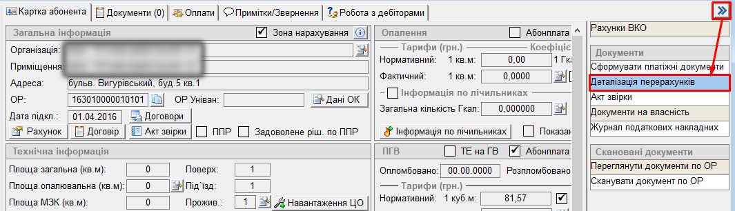 Для формування довідки про деталізацію перерахунків до акту надання послуг: