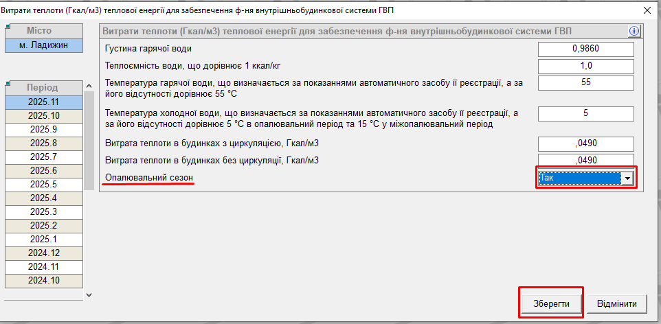 1. Спочатку в системі треба перевірити чи відображено потрібний опалювальний сезон.