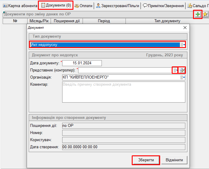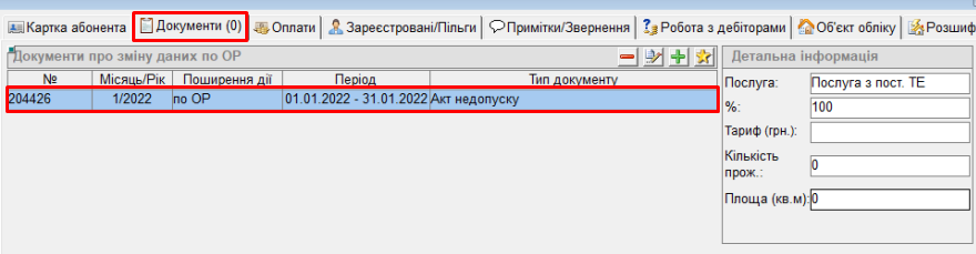 - після цього у вкладці "Документи" буде відображений заведений документ "Акт недопуску":