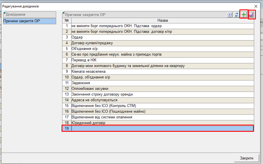 - вибрати з списку причину (якщо потрібної немає, можна доповнити довідник причин);