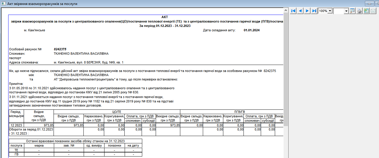 сформується звіт "Акт звірки":