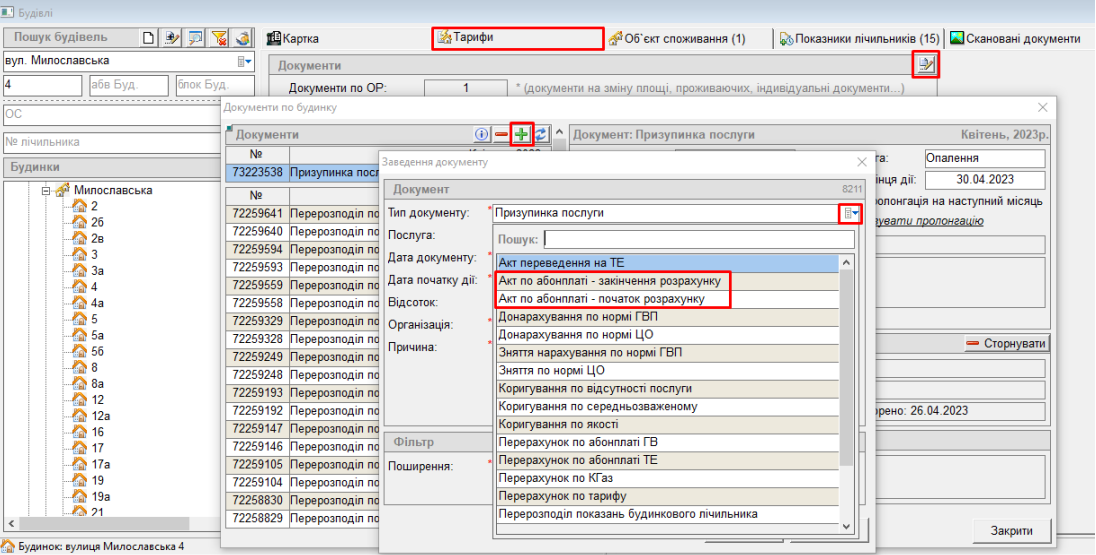 - у блоці «Документи» натиснути «листок з ручкою», відкриється вікно «Документи по будинку»;