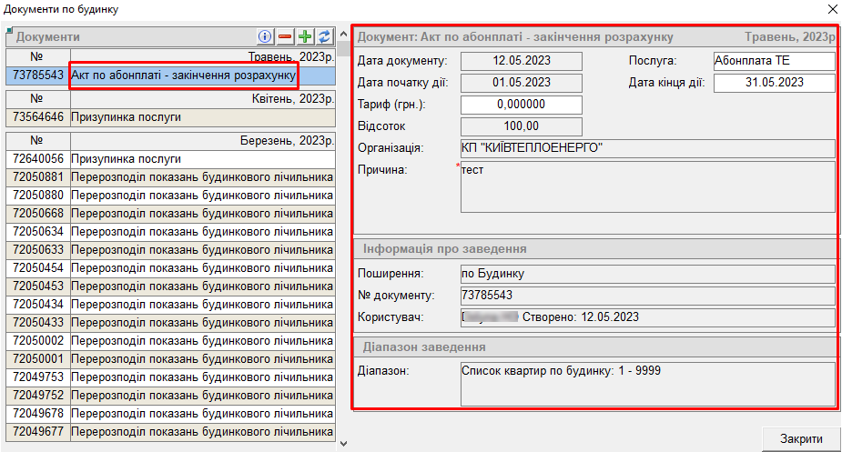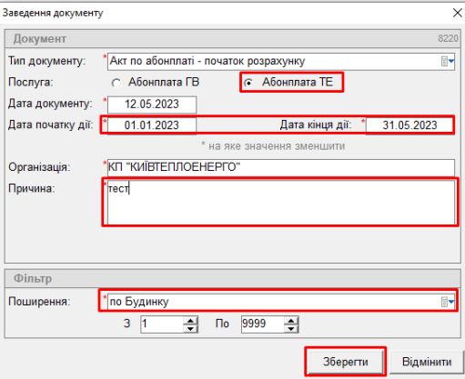 Є можливість заводити акт як по всьому будинку, так і по вибраному діапазону квартир або по РТМ.