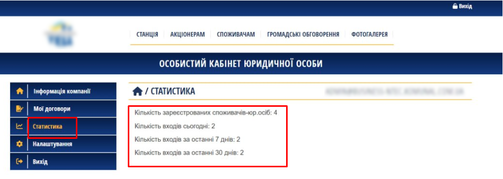 Додано новий пункт меню "Статистика" - в якому відображається статистика відвідування сайту (за сьогодні, за 7 днів, за 30 днів) та загальна кількість зареєстрованих користувачів. Доступний тільки для робітників організації - надавача послуг:
