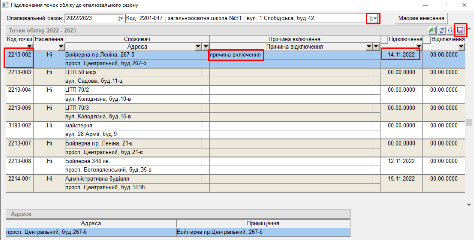 Абонентський відділ — Технічні параметри — Підключення точок обліку до опал.сезону: