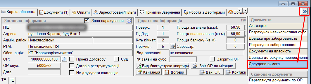 Для формування довідки "Досудова вимога" по ОР (інформація про заборгованість по послугам):