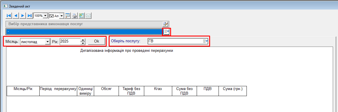 Для формування довідки про деталізацію перерахунків до акту надання послуг: