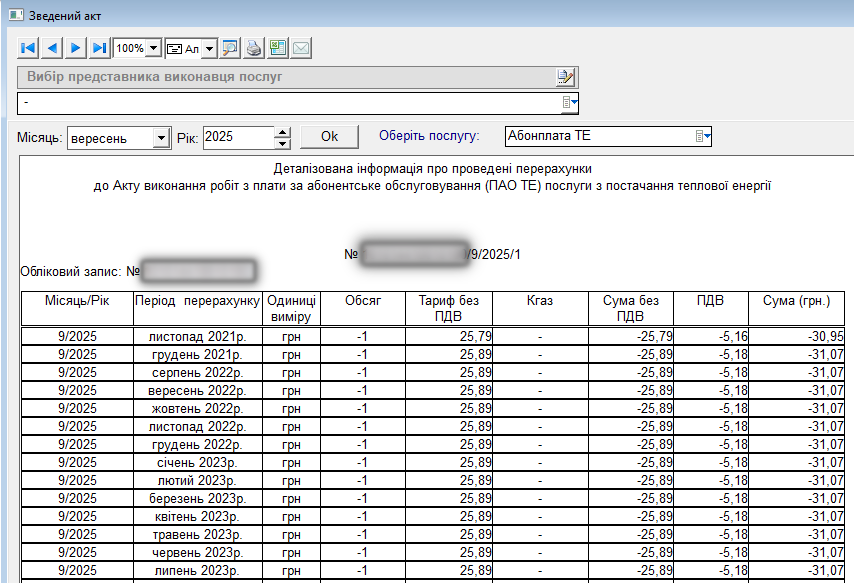 - Відображено повну інформацію по перерахункам, відповідно до акту надання послуг за відповідний місяць. Відповідно, номер довідки відповідає номеру акту виконаних робіт;