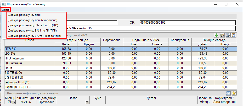 довідка сформується одразу за всі наявні періоди в які нараховувалися штрафні санкції по обраному ОР: