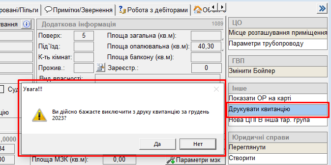 Щоб виключити з друку квитанцію по певному ор - обрати пункт "Друкувати квитанцію" та натиснутити "Да", після цього, в катці ор буде відмітка біля поля "не друкувати квитанцію".