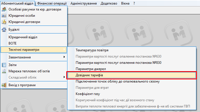 Абонентський відділ - Технічні параметри - Довідник тарифів