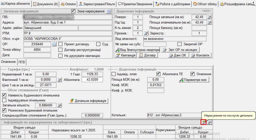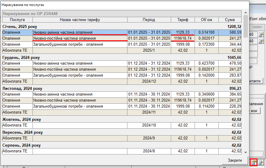 Для перегляду деталей щодо нарахування по послугах по ОР: