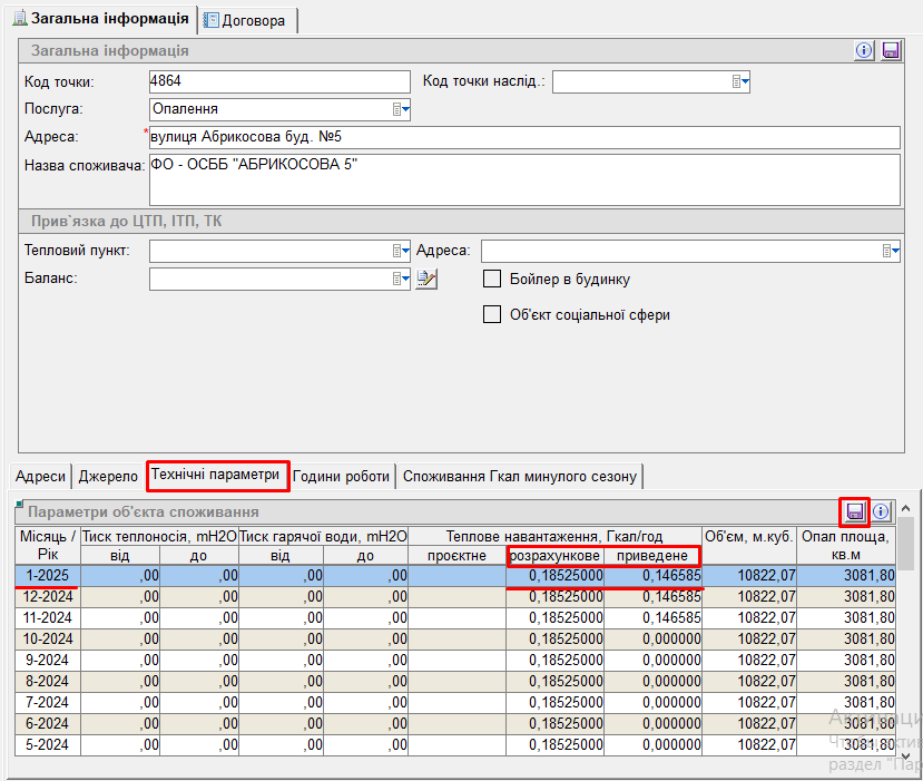 - натиснути кнопку для перегляду інформації про Об'єкт споживання: