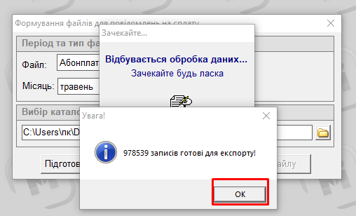 9) Коли файл сформується, висвітиться повідомлення «Файл успішно сформовано», і він буде збережений у папці, яку вибрали для збереження цього файлу.