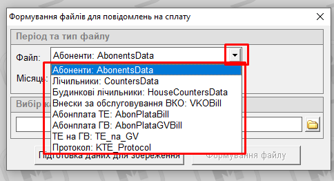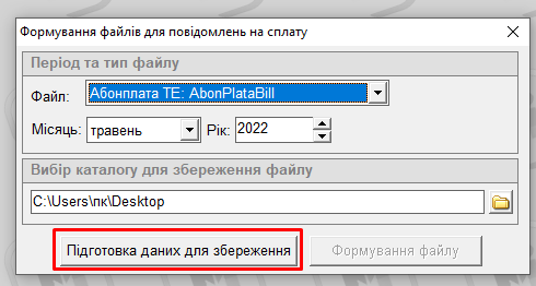 Фінансові операції - Експорт файлів для формування повідомлень на сплату: