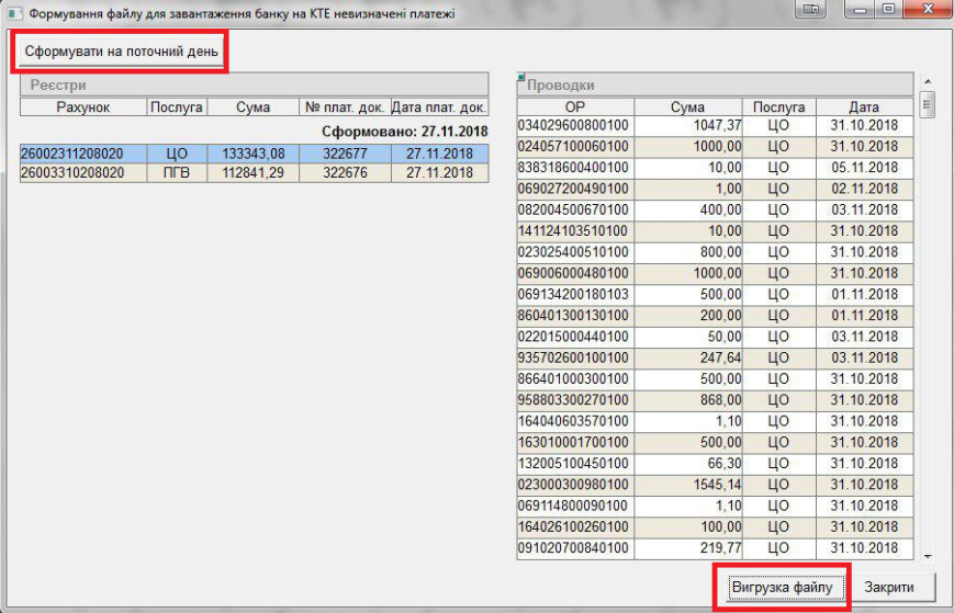 Для вигрузки файлу у dbf формат, натистути кнопку “Вигрузка файлу”: