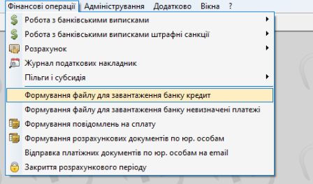 Фінансові операції — Формування файлу для завантаження банку на КТЕ кредит: