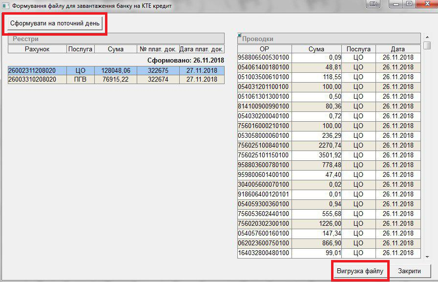 Для формування дбф файлу по платежам за поточний день перейти: