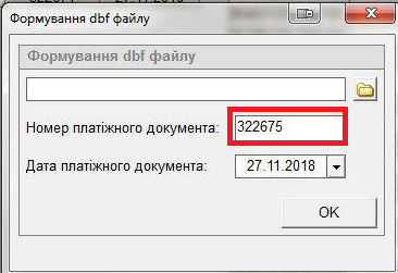 - номер та дату платіжного документа потрібно вказати з отриманого номера та дати платіжного документу сформованого у клієнтбанку, та натиснути "ОК":