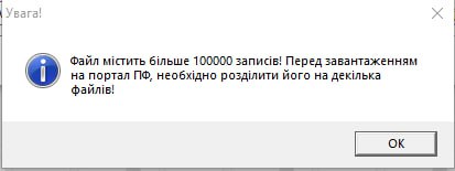 У такому випадку дивіться інструкцію: Як розділити файли для завантаження на портал ПФ у разі якщо вивантажений файл містить більше 100000 записів