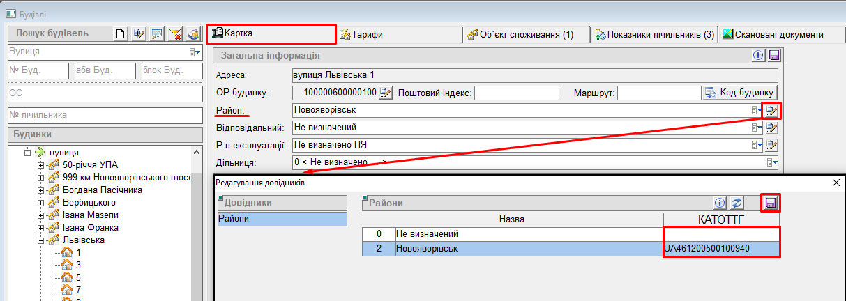 Для корректного заповнення поля KATOTTG (обовязкове поле для заповнення), потрібно в довіднику районів завести коди КАТОТТГ.
