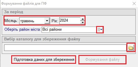 Відкриється вікно "Формування файлів для ПФ":