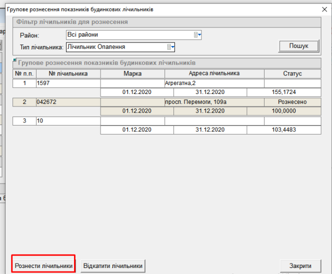 і далі - натиснути “Рознести лічильники”: