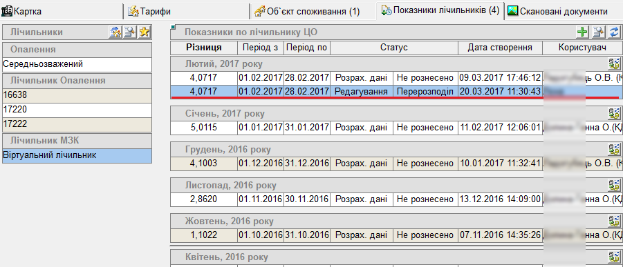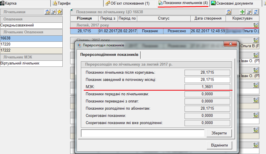 Якщо потрібно, то перерозподілити показник МЗК; якщо він вірний, тоді залишити як є: Коригування показника Перейти на лічильник ЦО.На кожен лічильник ЦО підтягується кількість МЗК рознесених/ перерознесених відповідного діапазону: МЗК