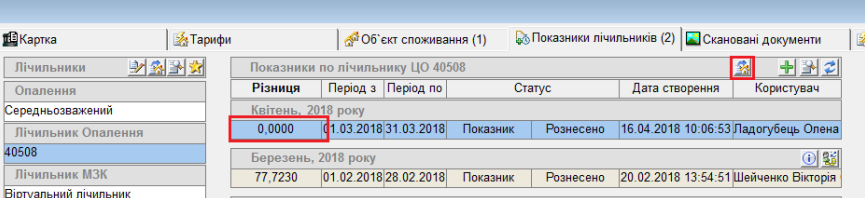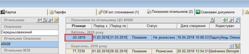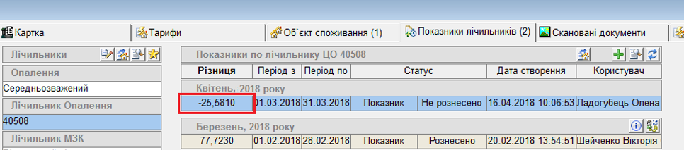 1. Рознести лічильник опалення, після цього від'ємний показник обнулиться, тому що до рознесення буде0 Гкал на поточний місяць: