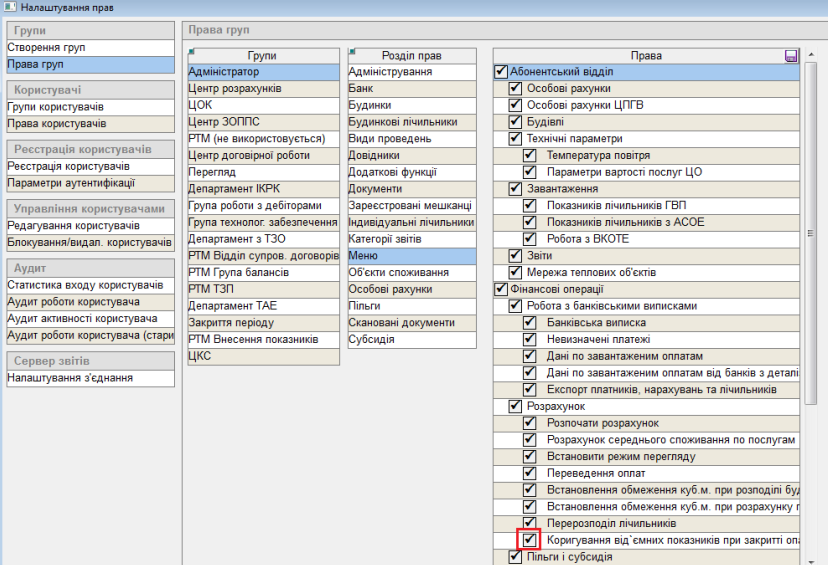 Фінансові операції — Розрахунок — Коригування від'ємних показників при закритті опалювального сезону: