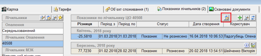 - у даному вікні загрузяться всі лічильники по яких є від'ємні показники і відображено скільки було нараховано за минулий місяць по лічильнику: