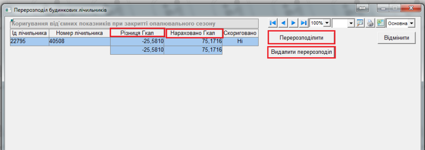- відкриється вікно “Перерозподіл будинкових лічильників”