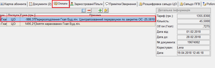 - по особовим рахункам даного будинку, у вкладці “Оплати” буде створено проводку: