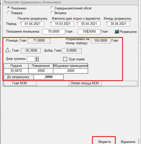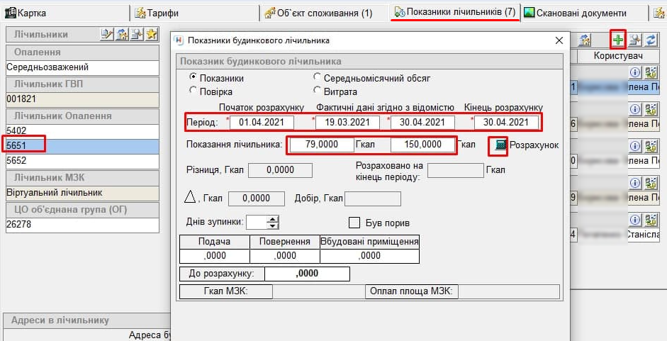 - і натиснути кнопку "+", відкриється вікно "Показники будинкового лічильника":