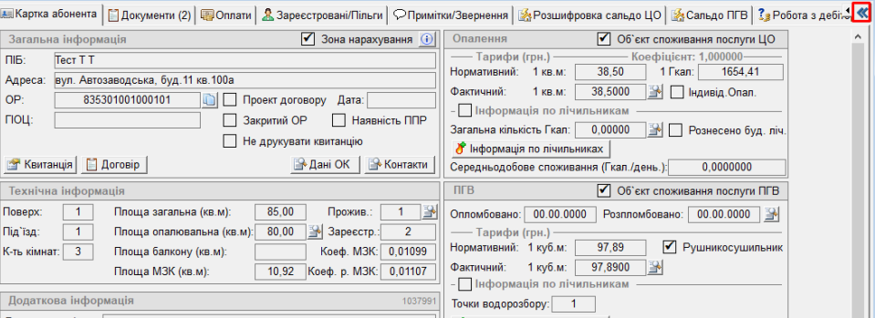 Щоб перейти у меню "Додаткові функції":Відкрити необхідній особовий рахунок, і натиснути кнопку "дві сині стрілочки": Додаткові функції по ОР Відкриється меню додаткових функцій: Додаткові функції по ОР