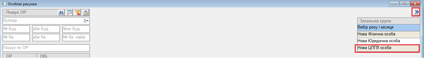 ЦПГВ особа створюється аналогічно як Юр. особи, див. інструкцію: Нові Юридичні особи та їх приміщення