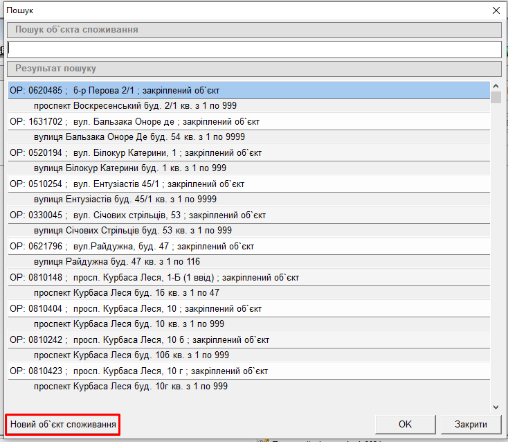 3. Натиснути кнопку “Новий об’єкт споживання”, відкриється вікно: