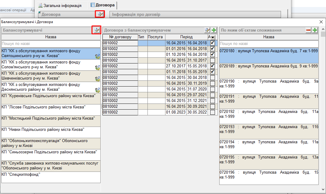 4. Перейти на вкладку “Договора”, натиснути кнопку “листок з ручкою”: