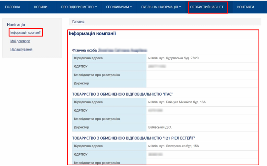 1) Перегляд Інформації компанії