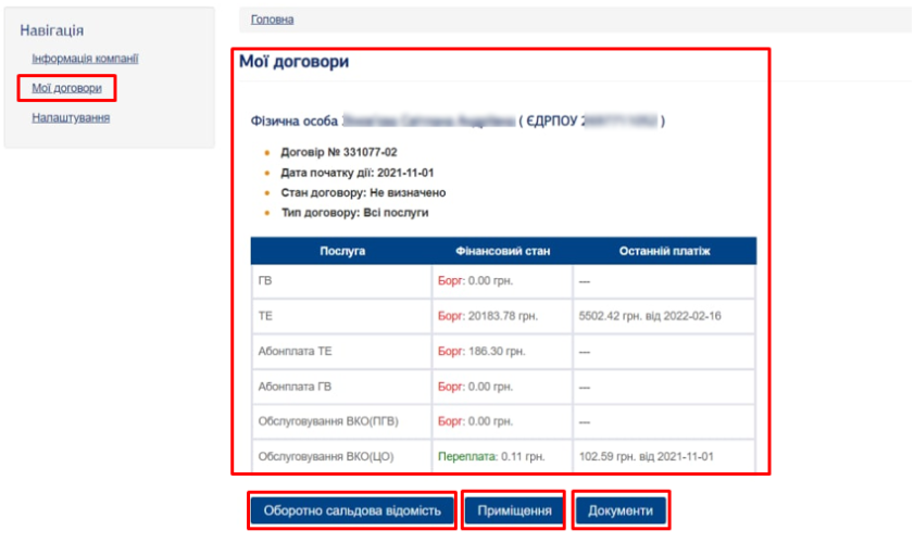 У даному вікні можливо переглянути інформацію по кожній послузі, яка надається: