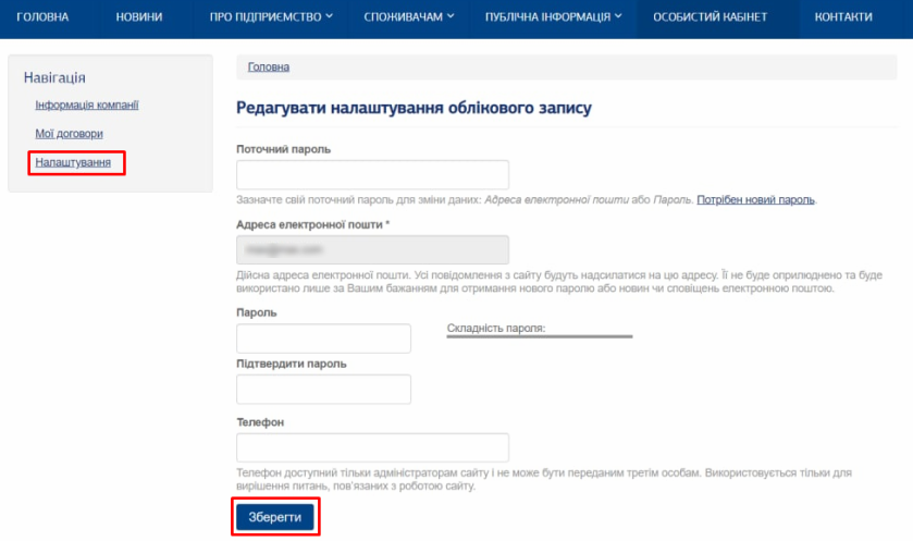 - Змінити пароль/ Електронну пошту/ Телефон: