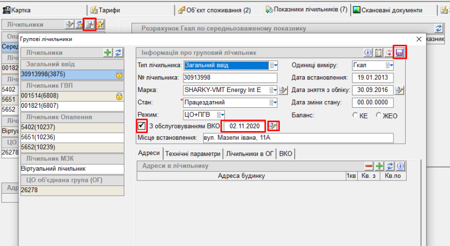 далі, для зміни ознаки "З обслуговуванням ВКО" та " дати":