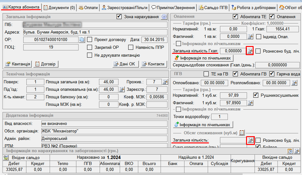 - на потрібному ОР натиснути кнопку "лупа" біля поля "Загальна кількість" (по Опаленню або ПГВ):
