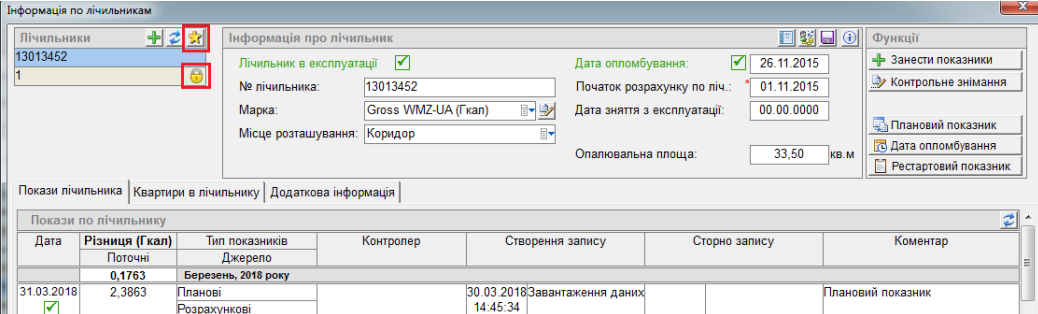 Щоб побачити всі лічильники (відкриті і закриті (з знаком замок)), натиснути кнопку "зірочка": Перегляд закритих лічильників