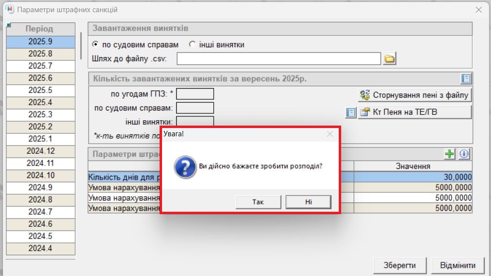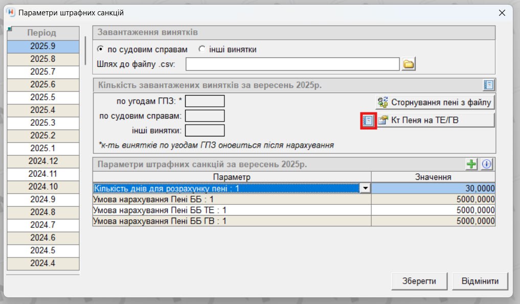 1. Відкрити вікно "Параметри штрафних санкцій".