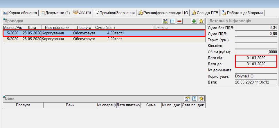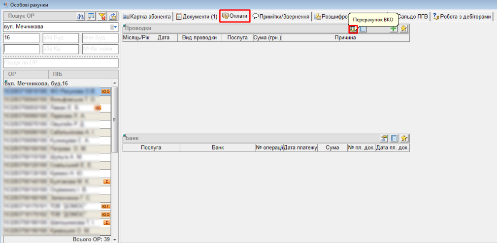 - після цього, перерахунок буде виконано, та у вкладці “Оплати” з’явиться запис про цей перерахунок: