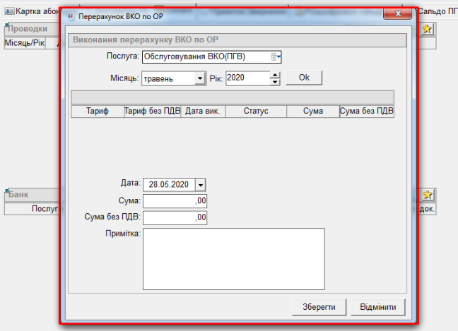4) відкриється вікно “Перерахунок ВКО по ОР”: