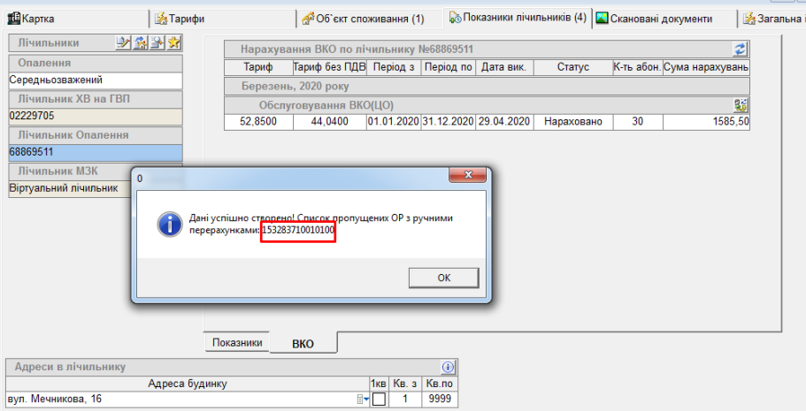 6) При перерахунку по будинковому лічильнику по послузі ВКО, перерахунок буде здійснений по всім ор, крім тих, по яким даний перерахунок був здійснений вручну: