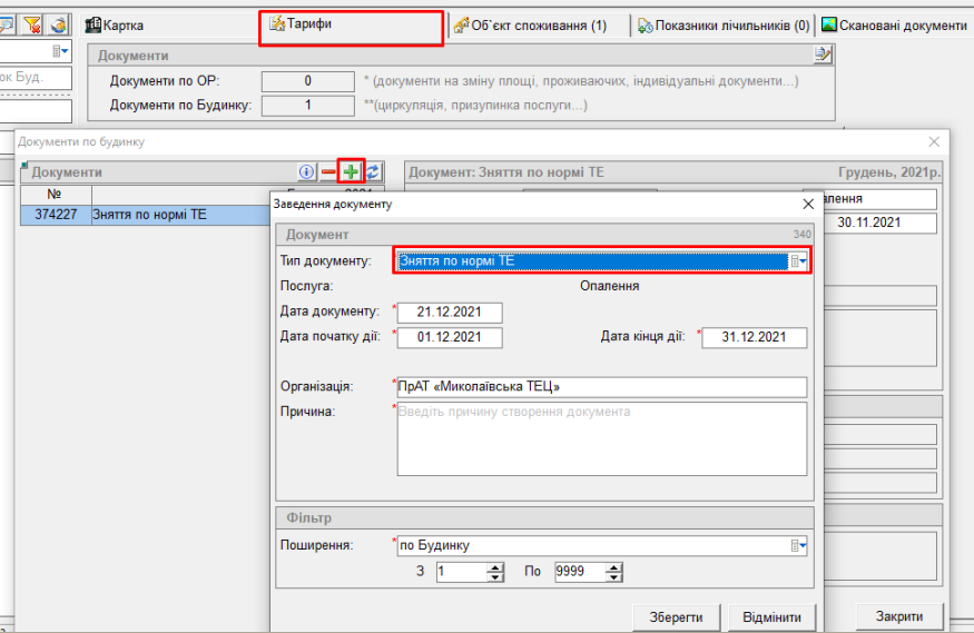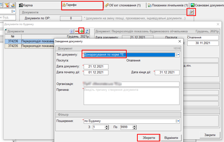 і далі зробити донарахування по нормі ТЕ, завівши документ з будинку: