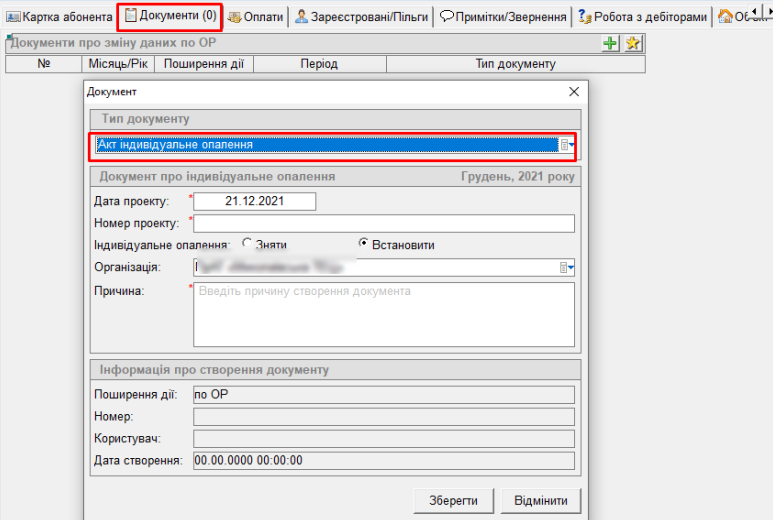 - спочатку потрібно по таким ор завести “Акт індивідуальне опалення” за попередній місяць: